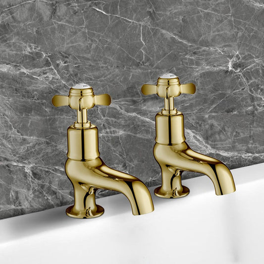 What are Pillar Taps? Traditional designs include a range of Basin Pillar Taps which are devised with separate hot and cold taps mounted on their own pillar or base. The defining factor is the two-hole design which gives every space a unique charm with the designer crosshead or lever handles and long nose spouts. Serving as classic choices, this Long Nose Basin Pillar Tap features white levers that blend perfectly with the brushed brass look, making it a popular buy for vintage interiors and homes! The separate controls for managing the water pressure of these bathroom sink taps allow users to adjust the temperature and flow of water independently, providing precise control and ensuring a comfortable bathing or washing experience.