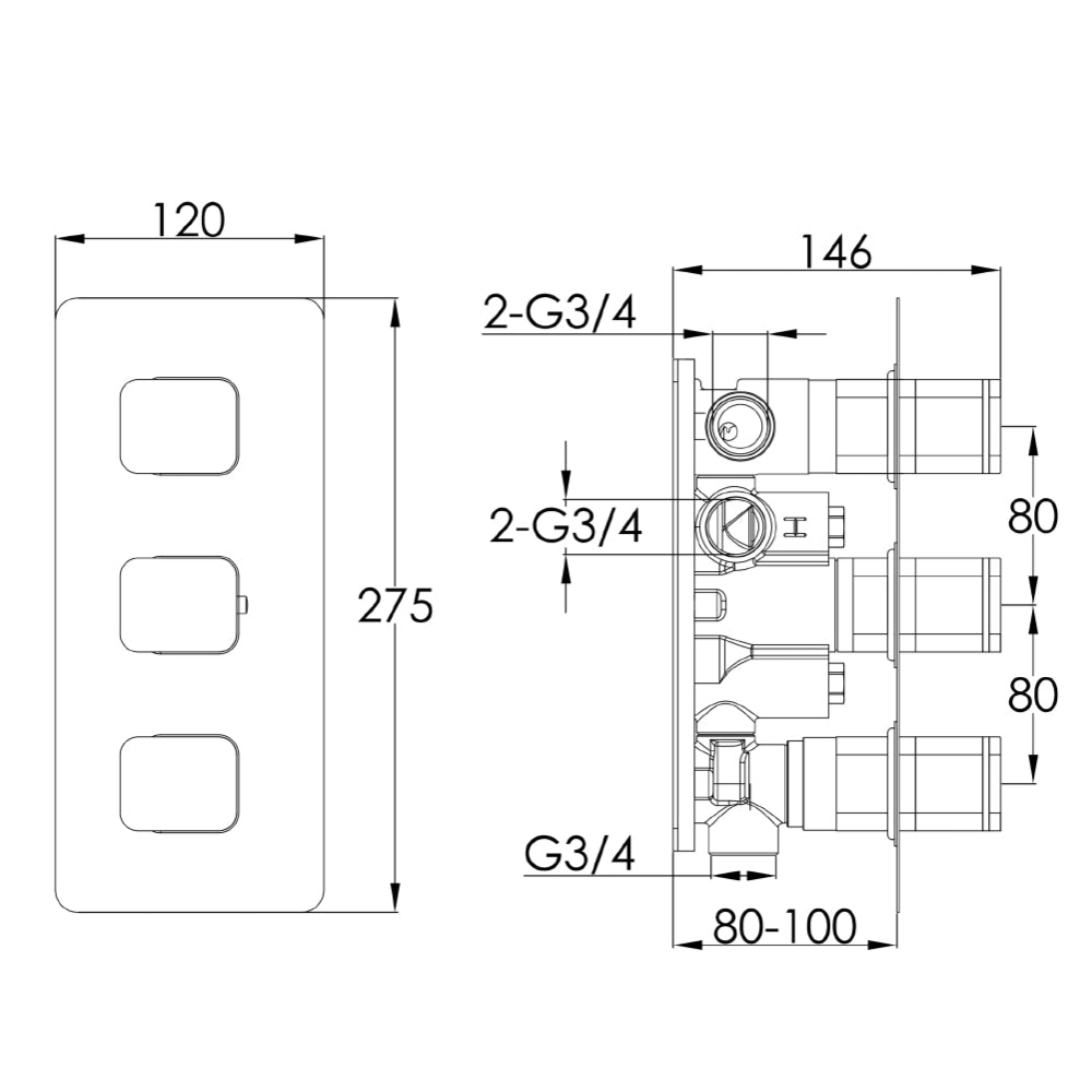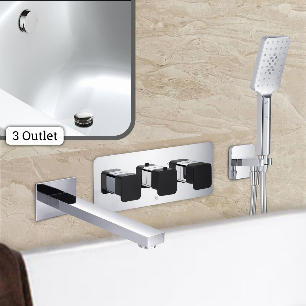 Elevate your bathroom's aesthetic and functionality with our Black Thermostatic Shower Valve. This concealed shower valve, designed in a modern style, offers a blend of sophistication and efficiency. Its rectangular shape plate, available in polished chrome and matt black finishes, adds a contemporary touch to any bathroom. Made from high-quality brass, this valve is not only stylish but also robust and long-lasting.